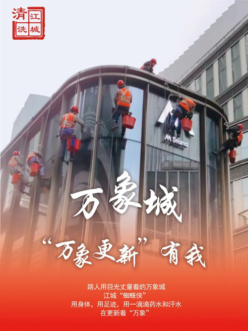 新的一年,萬象城將以嶄新面貌迎客。江城清洗工程隊期望它能匯聚更多歡樂。若您也想讓地標(biāo)建筑外墻潔凈如新,江城清洗工程隊?wèi){借其專業(yè)、專注、耐心的外墻清潔工,定是您的.佳選擇,助您共筑城市美麗風(fēng)景線。