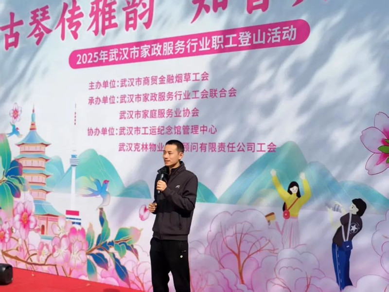 2025 年 4 月 3 日上午, “古琴傳雅韻 知音共前行” 2025年武漢市家政服務行業(yè)職工登山活動在古琴臺舉行。武漢市總工會二級巡視員周國華、武漢市總工會商貿(mào)金融煙草工會三級調(diào)研員董珊丹、武漢市家政行業(yè)工會主席楊浩、武漢市家庭服務業(yè)協(xié)會會長項丹等..出席活動。工會主席李友慧、黨支部書記方園親自帶隊,組織江城清洗公司職工代表積極響應,熱情參與此次活動。