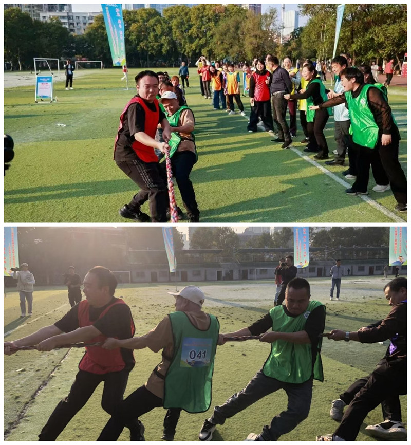 拔河比賽現(xiàn)場尤為激烈,隊員們腳抵著腳、肩并著肩,迅速形成合力,啦啦隊員齊聲助威,吶喊聲此起彼伏,大家緊緊擰成一股繩,全力以赴,賽出了健康、快樂,更展現(xiàn)了團(tuán)結(jié)、和諧的精神。
