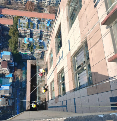 1月中旬,武漢江城清洗小分隊(duì)轉(zhuǎn)場(chǎng)京漢金地1903項(xiàng)目?jī)蓷澑叨俗≌M(jìn)行了玻璃幕墻的深度清洗。