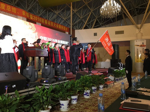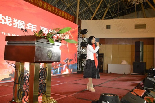公司銷售總監(jiān)馬海燕女士致開幕詞并介紹了現(xiàn)場嘉賓,公司董事長曾水泉先生致辭,激勵全體員工2016年再創(chuàng)佳績。