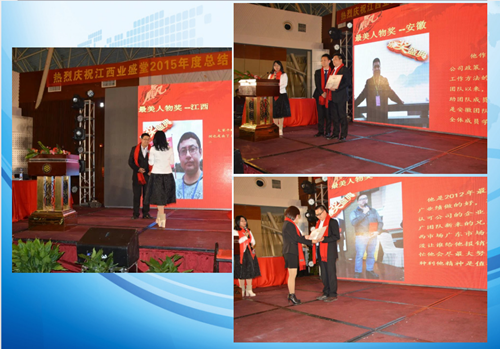 接下來業(yè)盛堂運營總監(jiān)做2015年年度工作匯報與總結(jié),隨后由銷售總監(jiān)馬海燕女士宣布獲得2015年人物獎和優(yōu)秀團隊獎以及優(yōu)秀省總?cè)藛T名單,會議總共頒發(fā)了20個人物獎和9個團隊獎以及5個優(yōu)秀省總獎。公司領(lǐng)導(dǎo)號召全體員工向他們學(xué)習(xí),學(xué)習(xí)他們在各自崗位上盡職盡責(zé)、任勞任怨,特別是舍小我顧大局的團隊精神!并鼓勵他們戒驕戒躁,在新的一年起到模范帶頭作用。
