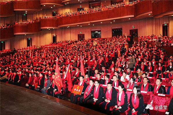 年會(huì)正式開(kāi)始,全體起立,升國(guó)旗、司旗,奏《國(guó)歌》、《業(yè)盛堂之歌》,如此盛世,必然感恩國(guó)家的支持。我們是業(yè)盛堂人,我們更是中國(guó)人。