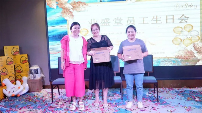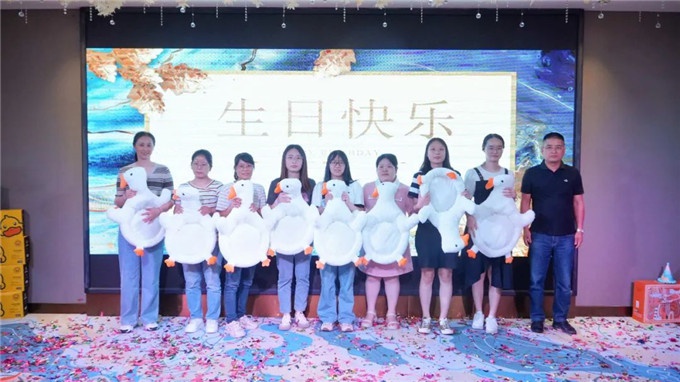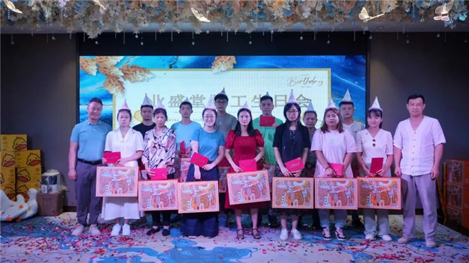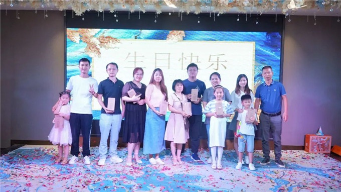 不僅精心準(zhǔn)備了一桌桌可口的美食,甜蜜四溢的蛋糕,董事長(zhǎng)曾水泉先生還親自為每位壽星送上了生日祝福和禮物。