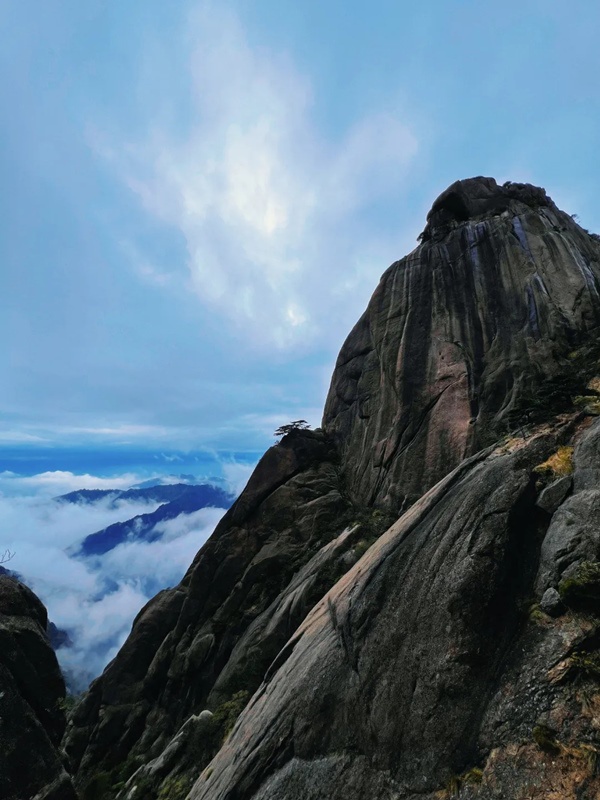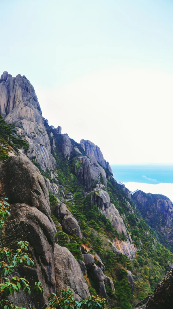 穿鰲魚峰,經(jīng)百步云梯,看迎客松